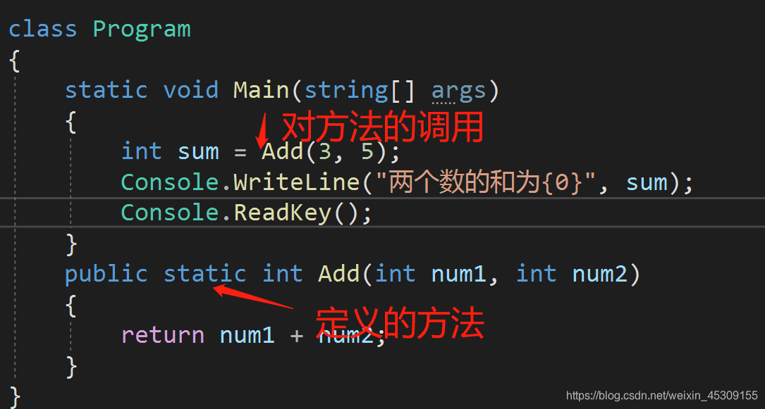 [访问修饰符] static 返回值 方法名([参数列表])---------说明:[ ]中的内同可以写,也可以省略