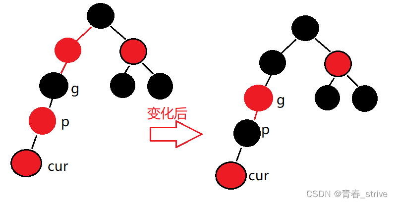 接着和场景1一样,g结点进行右单旋处理,且p变黑g变红: