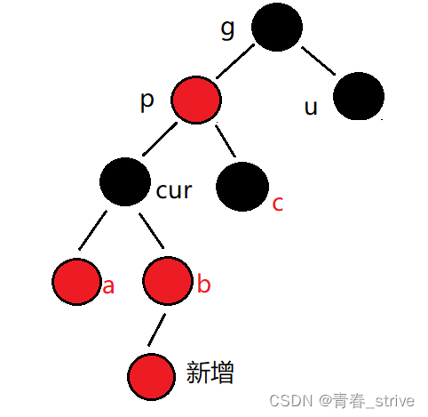 情况二是cur为红,p为红,g为黑,u不存在/u存在且为黑