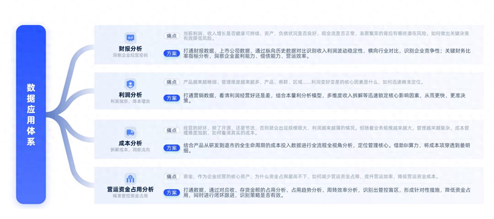 对于前面提到的问题,核心在于构建一个打通业务与财务的数据应用体系,它能看清家底、定位利润引擎、管住成本黑洞以及盘活沉睡资金。