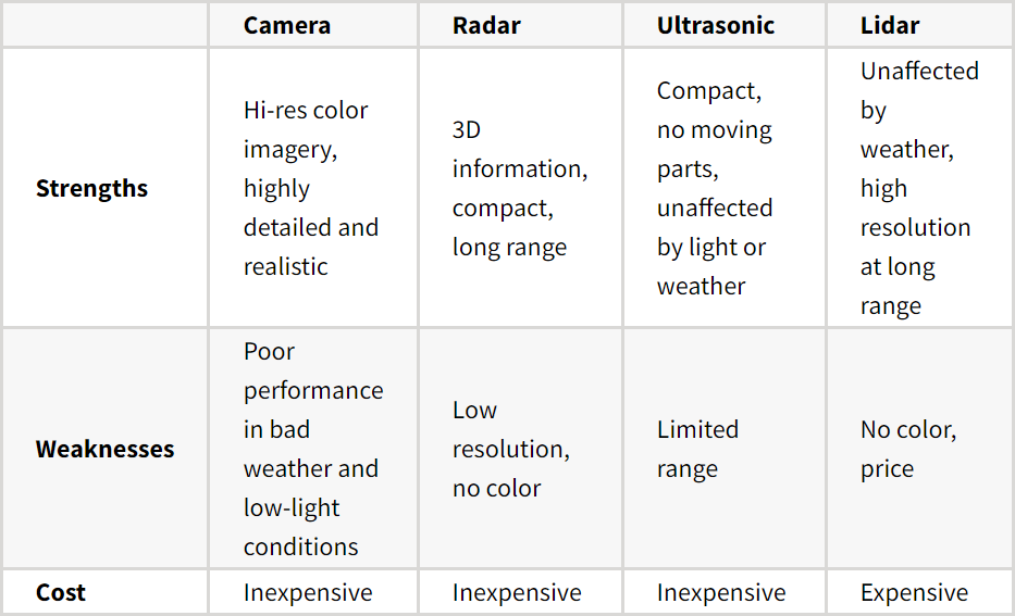 雷达使用无线电波,激光雷达使用光脉冲,而超声波传感器则通过发出短促的超声波脉冲并将其反射回传感器来评估环境中的物体。超声波传感器经济高效,在检测固体危险方面表现出色,通常用于汽车保险杠上,以便在停车时提醒驾驶员注意障碍物。为了在辅助驾驶应用中获得最佳效果,超声波传感器通常与摄像头结合利用。