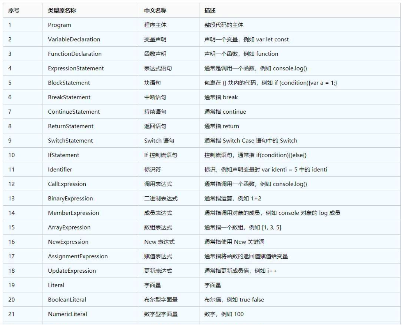 5. @babel/types :判断、验证节点的类型、构建新 AST 节点等。