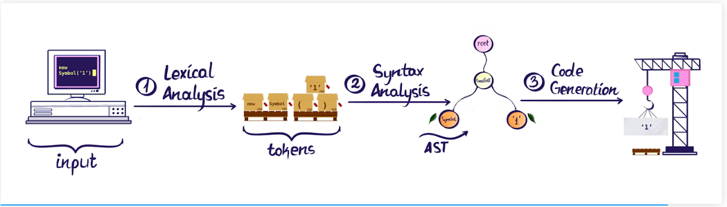 其中,生成 AST 、生成字节码、生成机器码是比较重要的三个阶段。