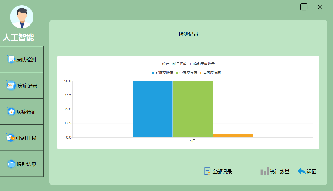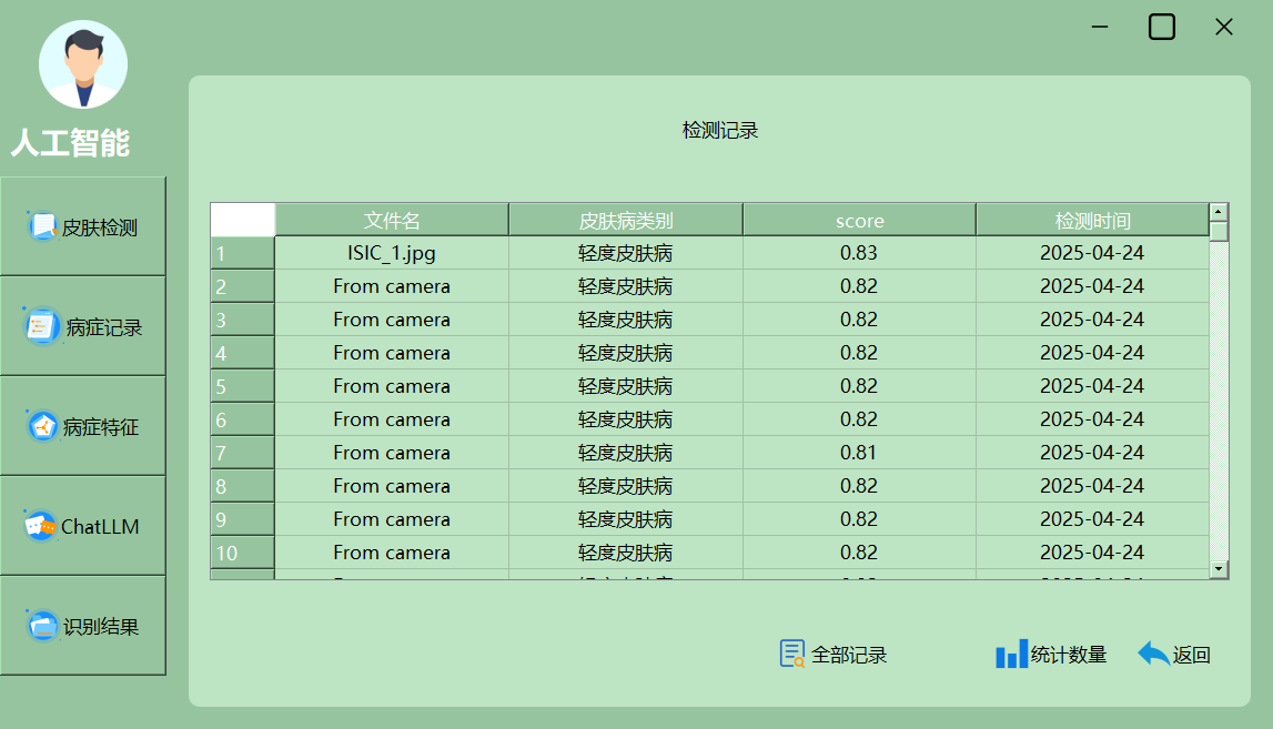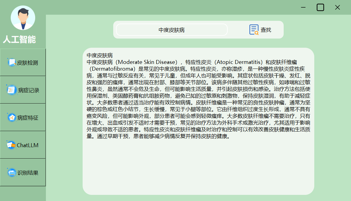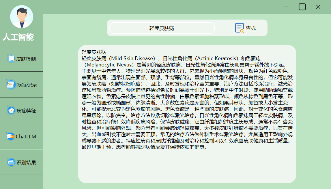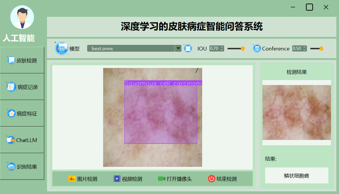 本系统深度学习与大模型融合的皮肤病智能问答系统框架,献出了多种检测与结果呈现方式,能够满足科研与临床的多样化需求。以下为主要效果界面展示: