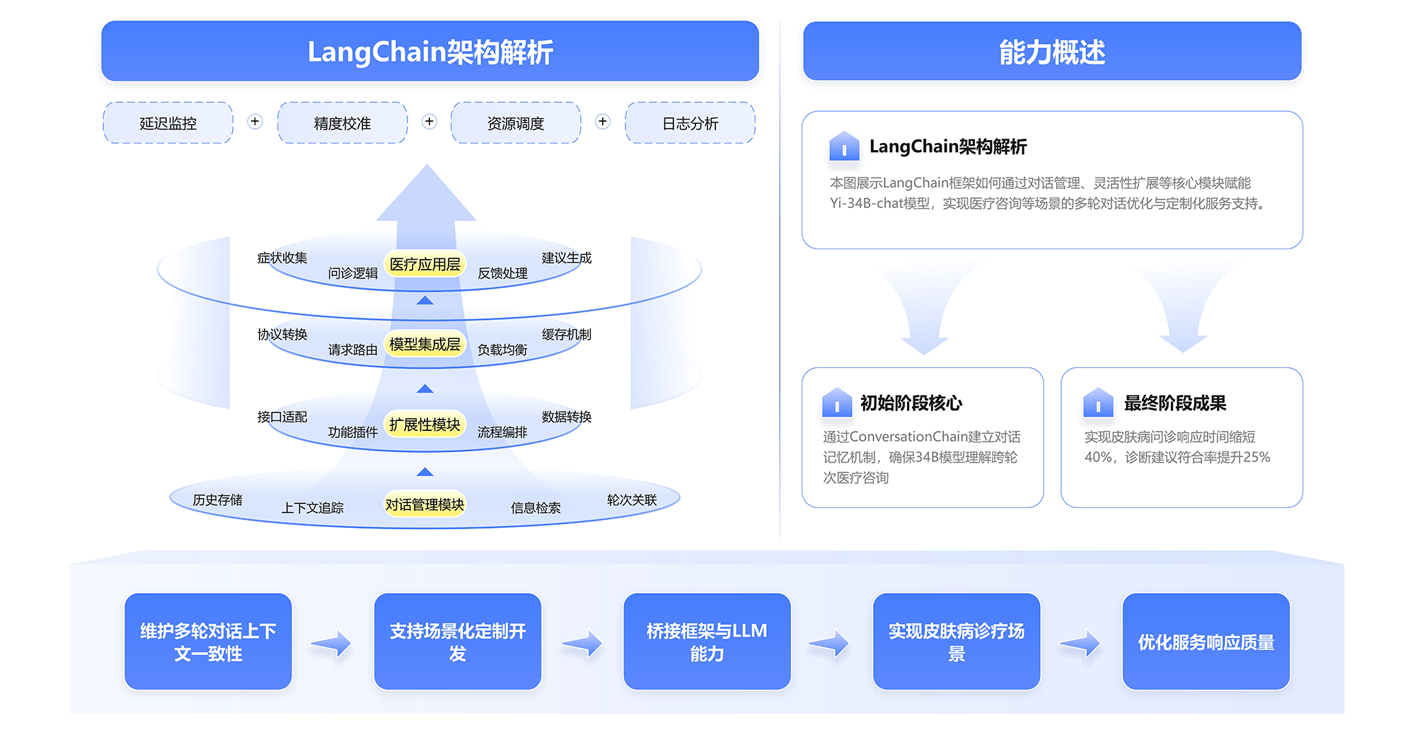 问答流程与技能通过对用户输入的自然语言进行解析,结合多轮对话管理和模型推理,生成精准的诊疗建议,并在持续对话中提供个性化的响应与优化。