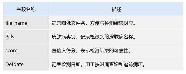 表3 皮肤病检测记录字段功能说明