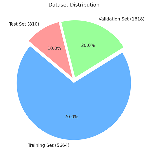 标注后的数据集不仅包括图像文件,还包含对应的标注信息。经过上述所有步骤处理和验证后的图像数据被划分成训练集、验证集和测试集,形成最终的数据集,用于算法训练学习模型。