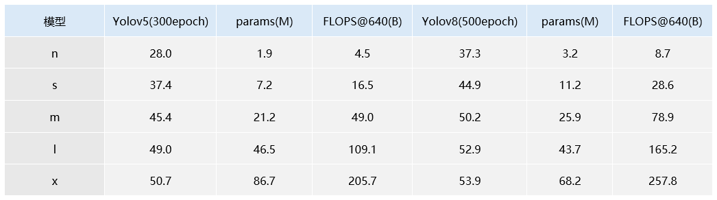 表1 YOLOv5 与 YOLOv8 模型规模对比图