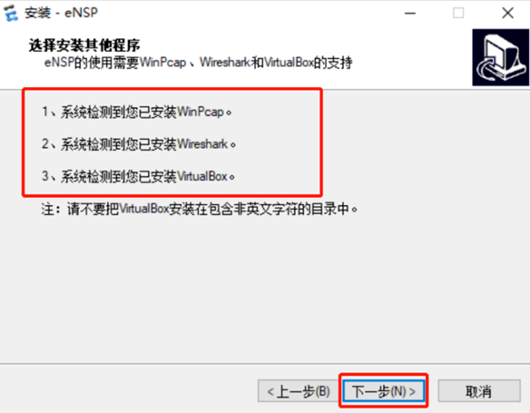安装前先检查安装环境,确保依赖程序和eNSP都不存在于安装环境上,如果安装过卸载相应程序,并谨慎清理注册表后安装。