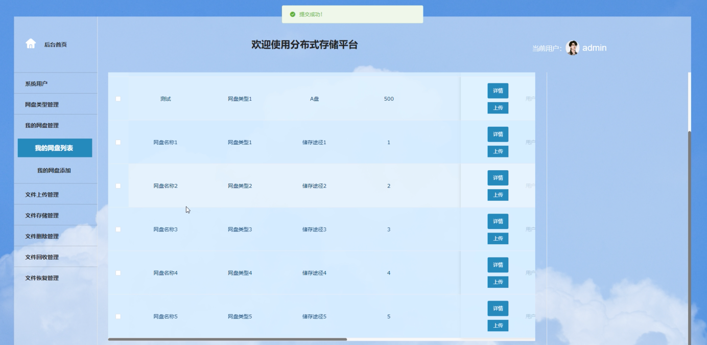 用户文件上传管理界面如下图所示。