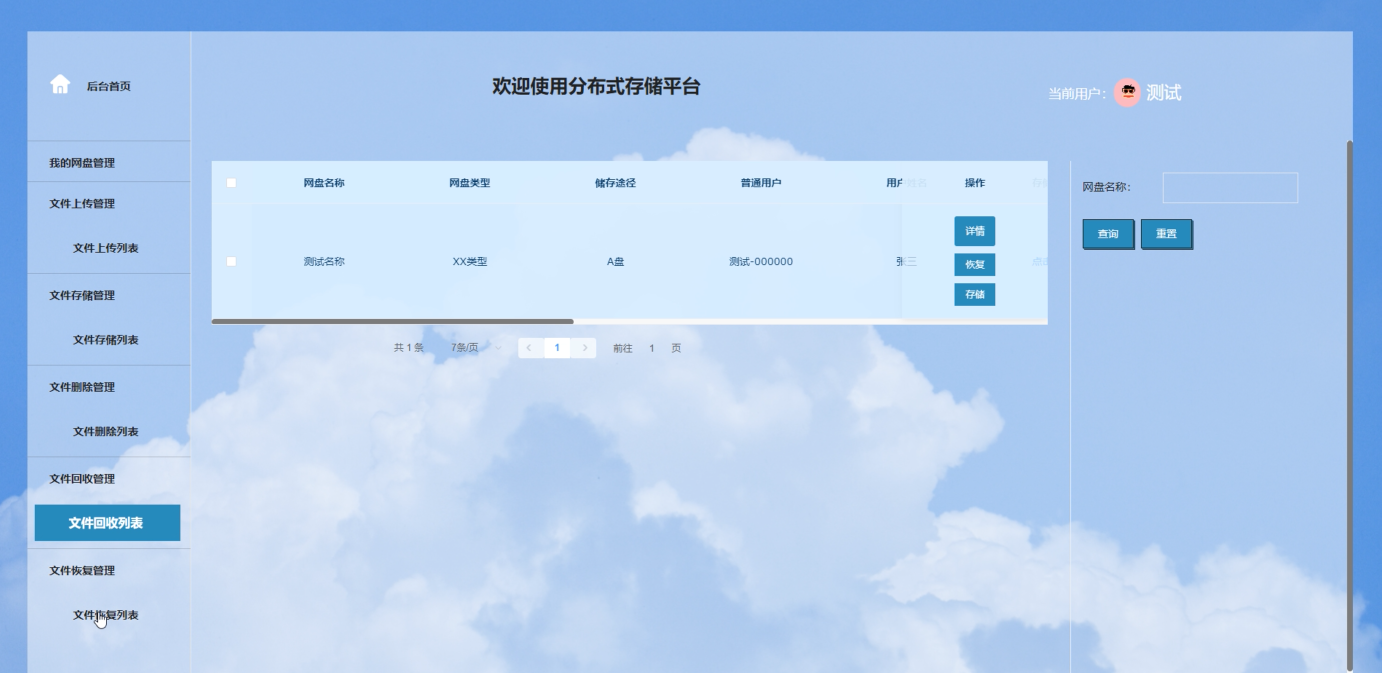 本研究旨在设计并实现一个基于Spring Boot、Java和MySQL的分布式存储平台,以满足个人用户和管理员在资料管理方面的需求。凭借构建支持记录上传、下载、删除、恢复及回收站管理等机制的系统,克服传统集中式存储在扩展性、性能和可靠性方面的不足。同时,研究重点探索分布式文件系统的集成方法,优化数据存储与访问效率,并通过权限管理机制确保环境的安全性与稳定性,为用户提供高效、可靠的文件管理解决方案。