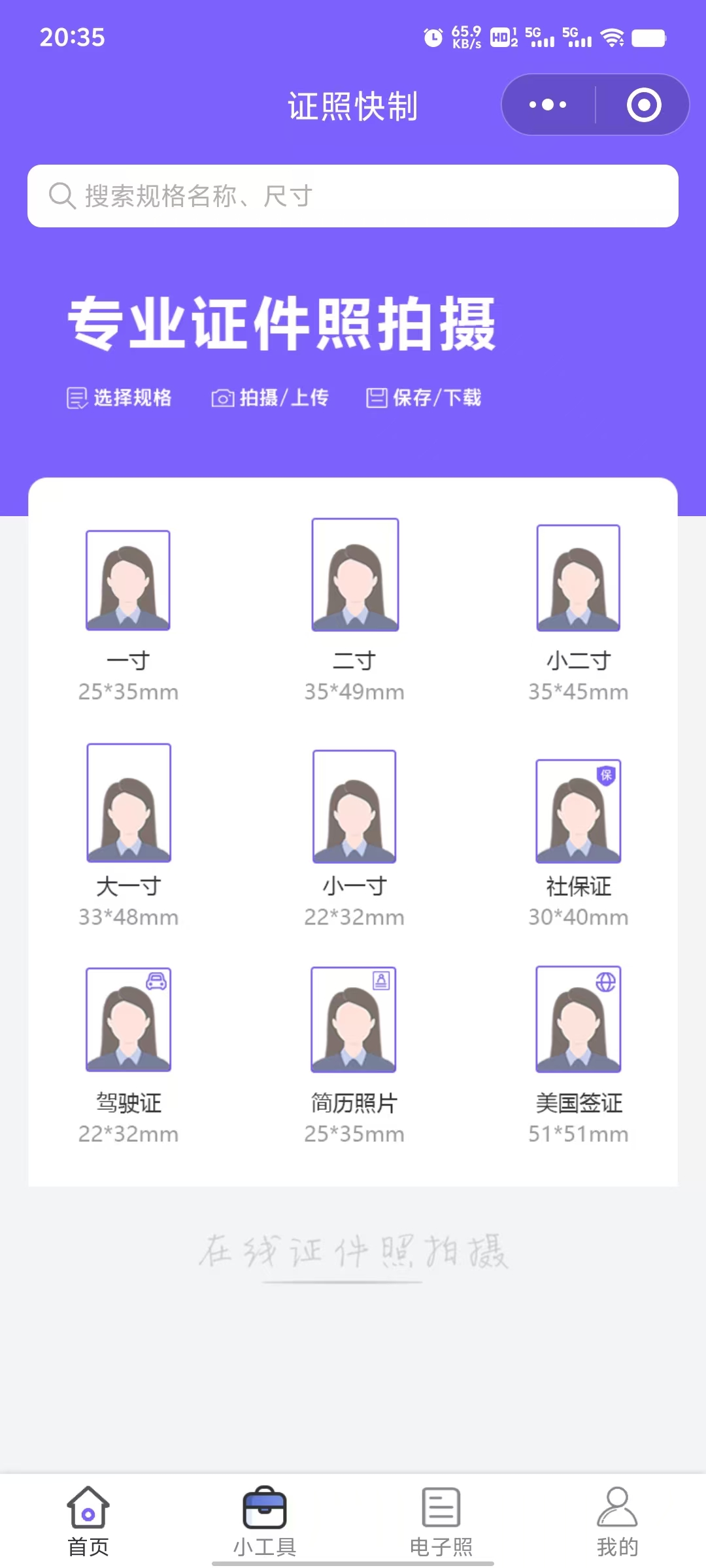 【证照快制】是一位功能全面的证照制作能手,它支持多种类型的证件照制作,就像一个万能工具箱,满足用户在不同场景下的多样化需求。无论您是需要哪种类型的证件照,它都能轻松应对。