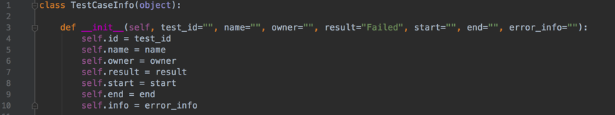 测试用例信息类用来标识测试用例,并且包括执行用例、执行结果信息,主要包括以下字段。