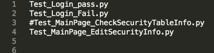 用例前没有“#“标记的测试用例脚本会被执行,而有”#“标记的则会被忽略,这样可以很方便的控制测试集的执行,当然也可以创建不同的文档来执行不同的测试集。