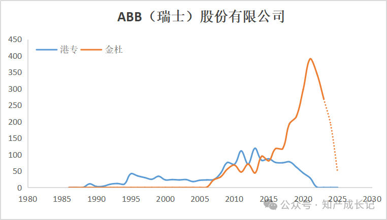 图6 港专和金杜代理ABB(瑞士)股份有限公司的专利申请量趋势