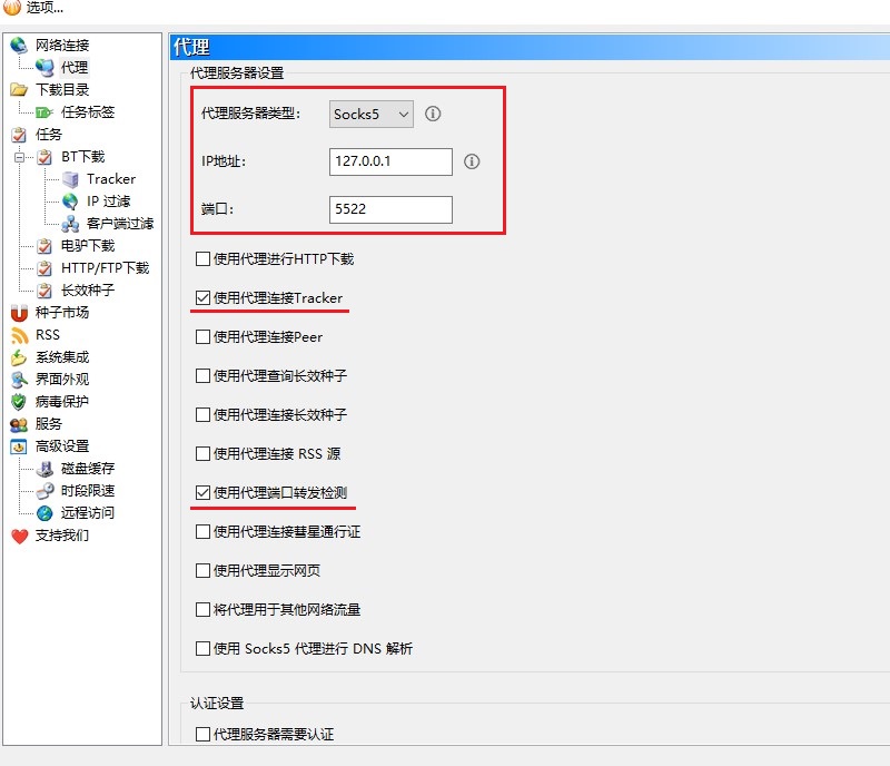这样一来UDP tracker和 http(s) tracker 都可以通过代理连接