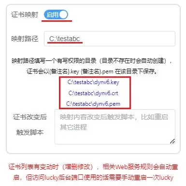 成功申请到的证书被 加密存储在lucky内部 可被内置的web服务所使用