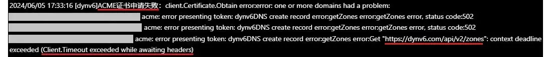 例如下图中就是连接 dynv6 的 API 超时引起的错误
