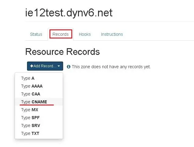 登录Dynv6 》 点击 My Zones 》 选择你的动态域名 》 添加CNAME记录