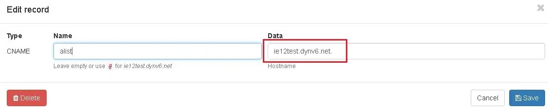当然我们也可以将其指向其他域名 不过要在指向的域名后加上英文点号 .