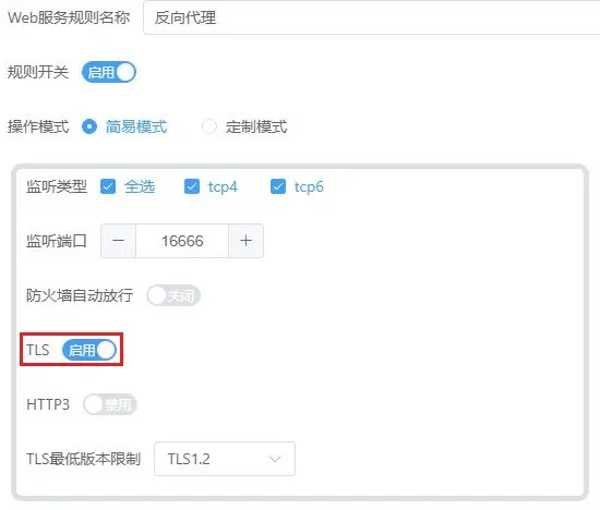 - 监听端口 与之前设置的反向代理规则使用相同的端口