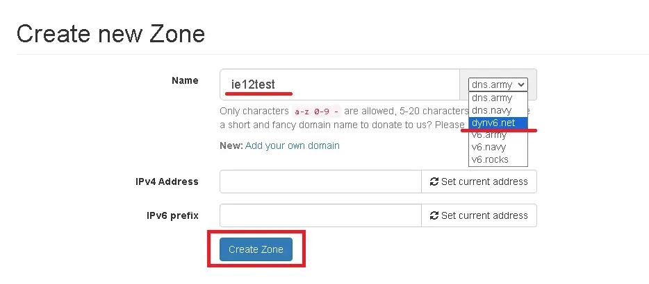 - 选择一个方便记忆的一级域名这里选择 dynv6.net