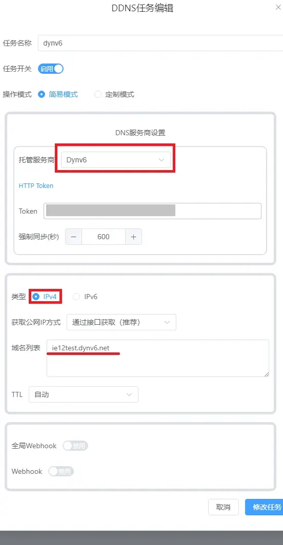 接口地址改为:https://dynv6.com/api/v2/zones/你的域名ID/records/你的记录ID