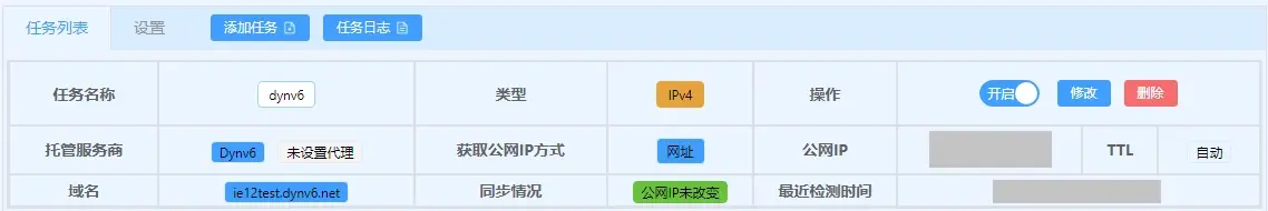 等待片刻后显示 公网IP未改变 或 更新成功 即设置正确
