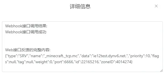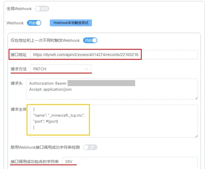 - 在stun传穿透的IP或者端口发生变化时可以触发webhook请求 使用其向dynv6的更新api发送请求更新srv记录中的端口