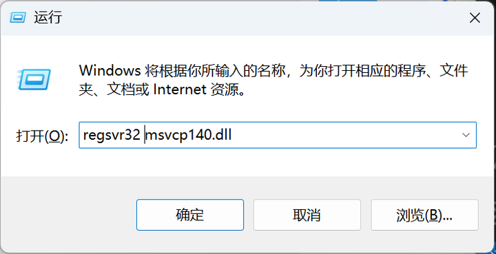 win + r快捷键安装,输入如以下所示,其中 msvcp140.dll 为你下载的文件;