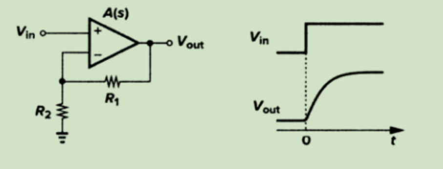 - 一阶系统模型:为了简化分析,我们将运放闭环系统近似为一个一阶RC低通网络。这个系统的阶跃响应是指数形式的: