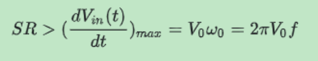 要使输出不因压摆率限制而产生失真(从正弦波变成三角波),放大器必须满足,那么输入信号的最大频率为: