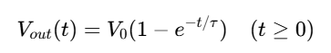 Vout(t) = Vfinal * (1 - e^(-t/τ))