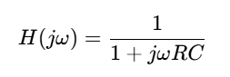 利用复数阻抗法,电容的阻抗为1/jwC。这是一个分压电路,化简后得到: