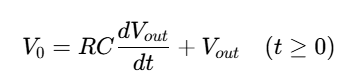 我们分析阶跃响应,即 V_in 在 t=0 时从 0 突变为 V_0。