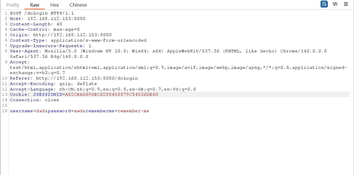 随意输入账号密码,点击 Remember me,然后在登录的时候抓包如下。