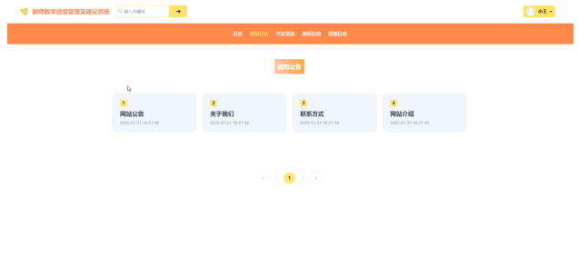 The system uses the Spring Boot framework for back-end development, with MySQL database to achieve data persistence, and uses Java language as the main programming language. The functions of the system cover three modules: student users, teacher users and administrators, and realize core functions such as course information browsing, teaching progress management, and data analysis. In addition, the system also provides rich resource management and personal center services to meet the diverse needs of different users. Technically, the project follows the principle of modular design, which ensures the scalability and maintainability of the system.