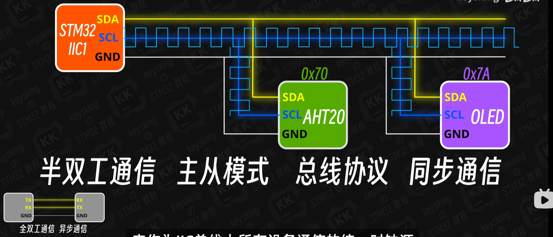 UART:异步串口(常见,常用 TX/RX 两根线,最常用波特率 9600、115200)。