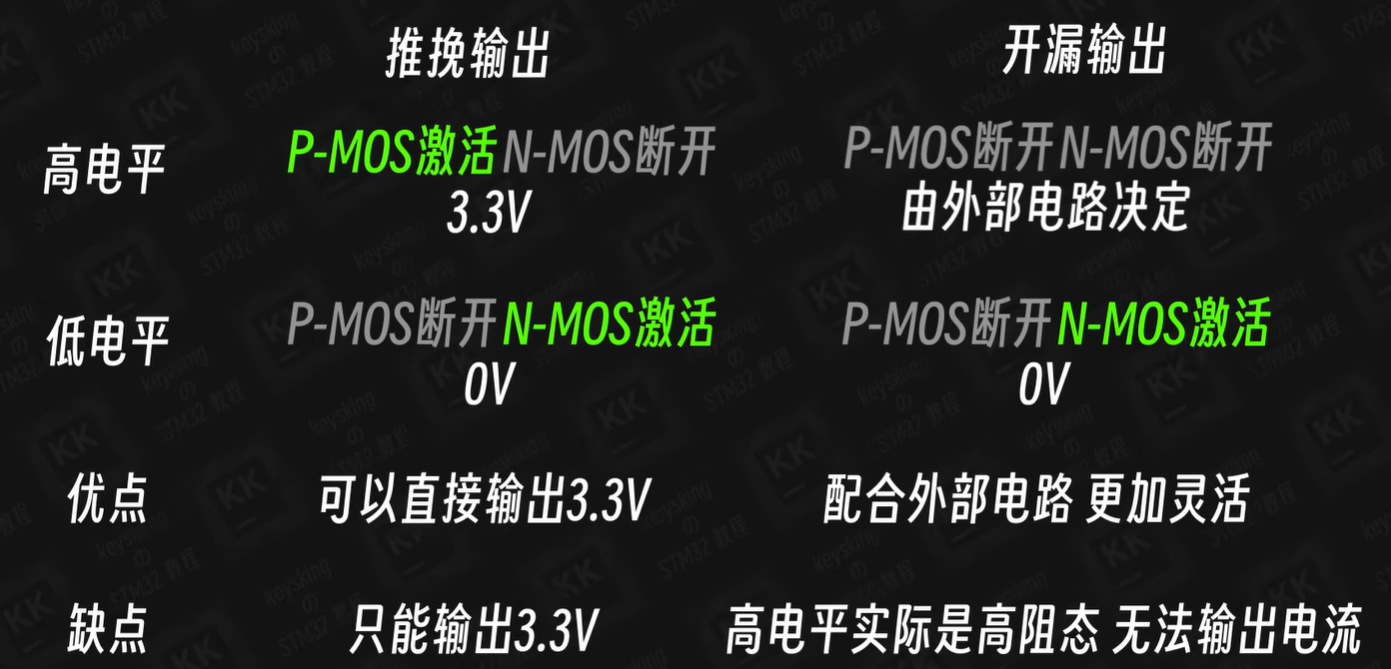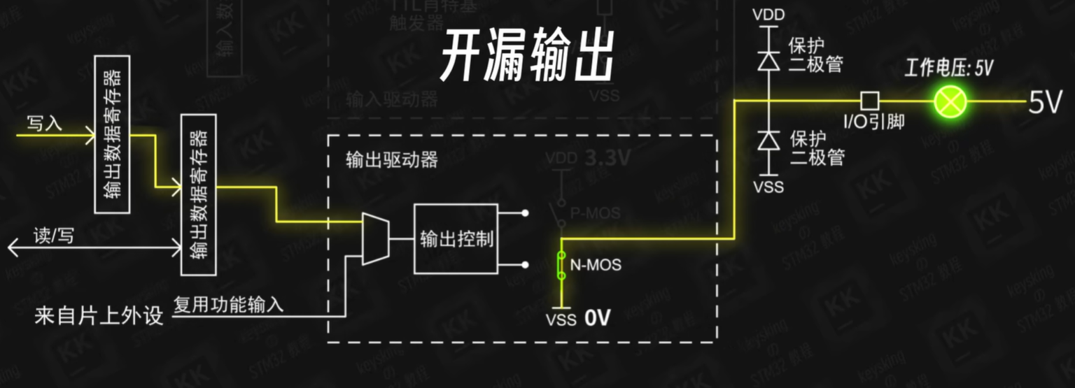 开漏输出:不具备主动驱动的能力,必须依靠外部电压来进行驱动。使用开漏输出的时候需要选择支持5V容忍的IO口。