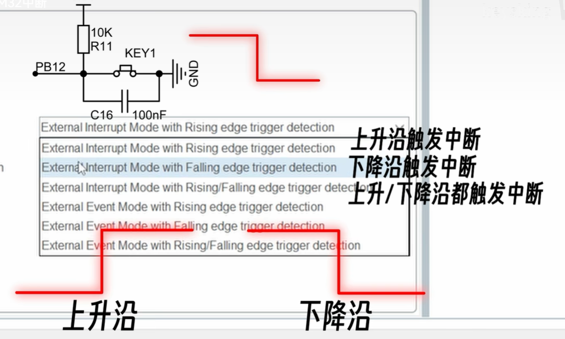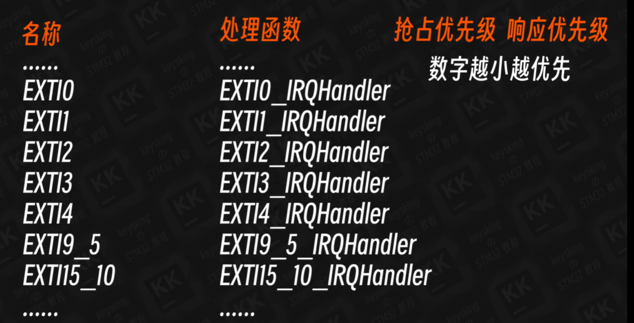 外设产生中断请求:比如定时器溢出、串口收到数据、外部 IO 引脚电平变化。