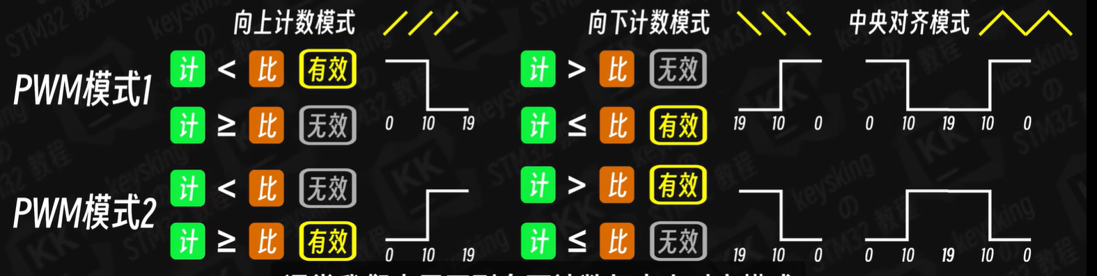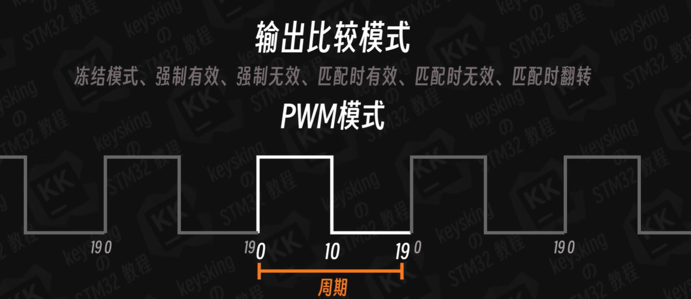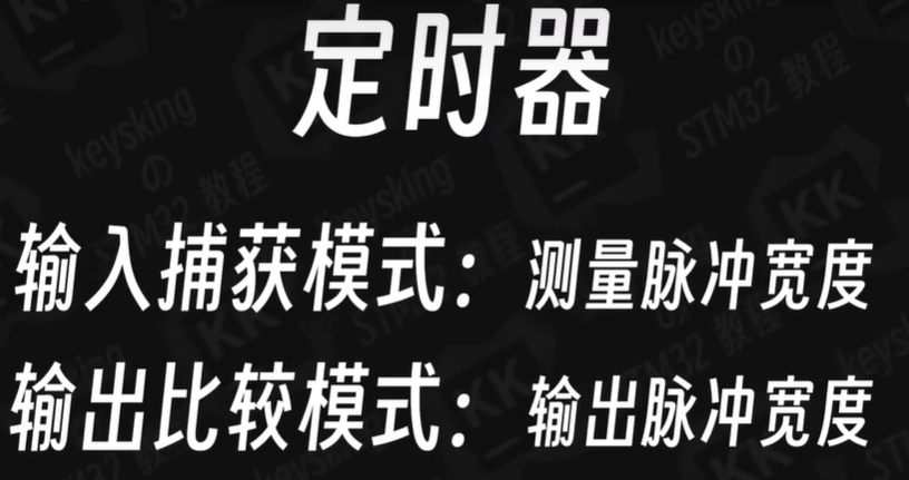 定时器的两种作用:1.输入捕获模式:测量脉冲宽度。2.输出比较模式:输出脉冲宽度。