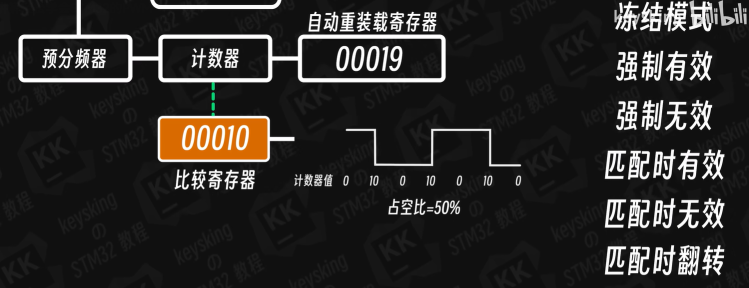 通过调节比较寄存器的大小就可以调节PWM的占空比: