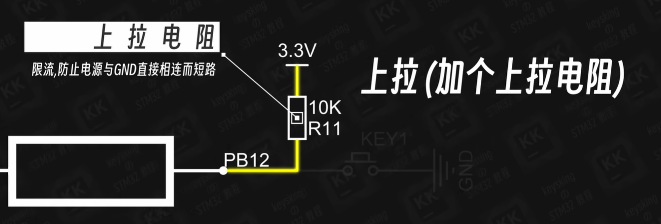 上拉电阻:上拉电阻(pull-up):把引脚“默认拉高”,也就是空闲时稳定在高电平。