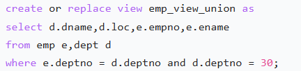 比如要修改 “emp_view_union” 视图,让它查询部门编号为 30 的记录(原本查询部门编号为 20 的记录),可以执行以下语句: