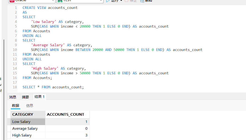 题目如下图,首先要创建Accounts表,然后插入数据,再创建视图,结果查询视图
