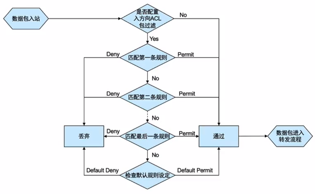 • 包过滤必须配置在接口的某个方向上才能生效