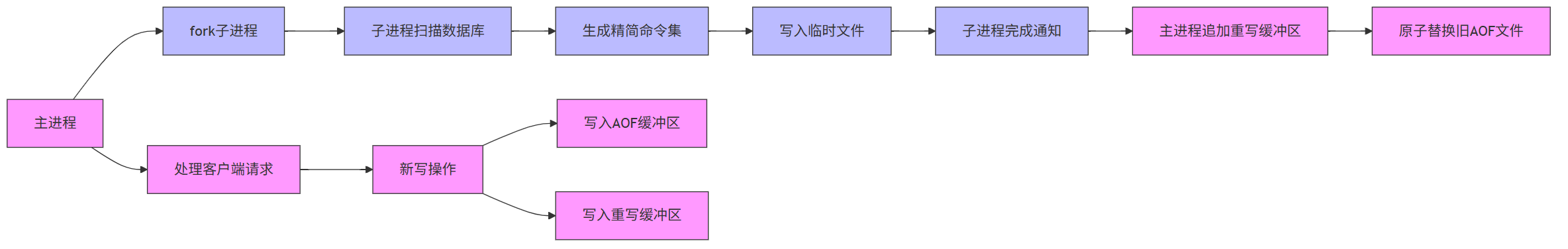 简单说就是:用 AOF 日志记录两次快照之间的操作,这样 AOF 文件不会太大,也不用频繁重写。