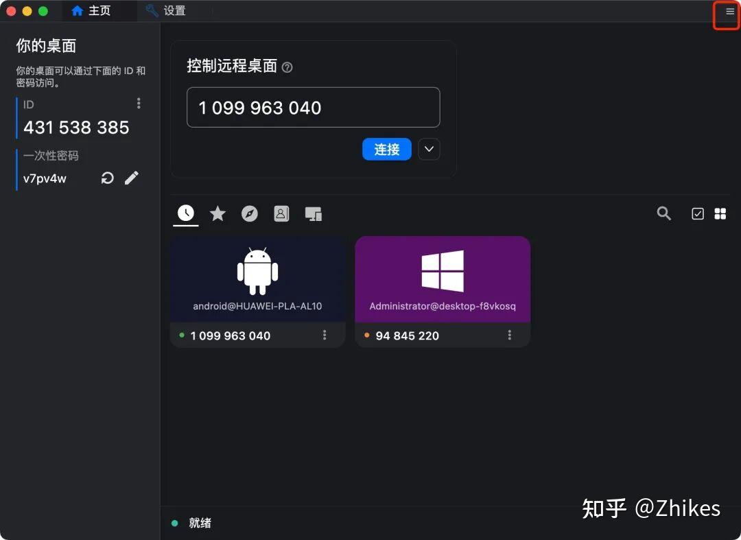 下载软件后在软件中配置好ID/中继服务器,这里以Mac电脑端控制Android端为例