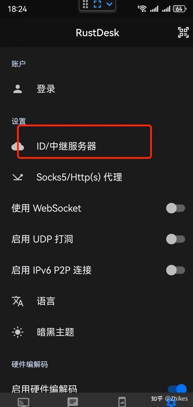 打开app,点击底部的设置,然后找到 ID/中继服务器